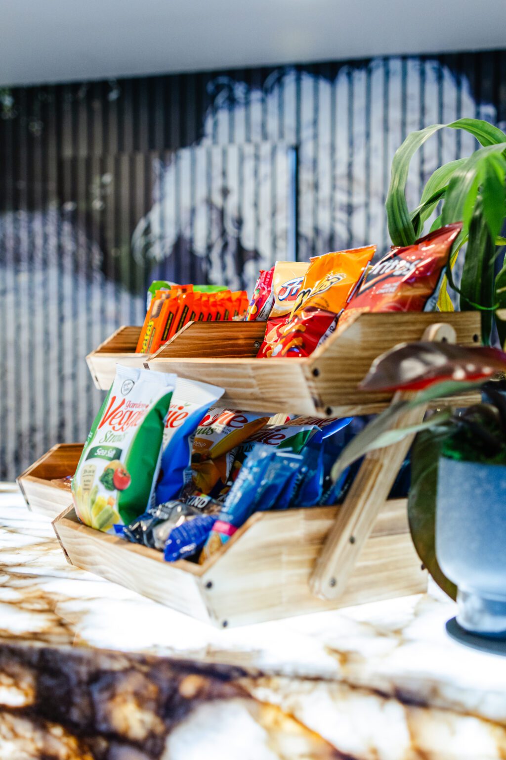 In addition to our bar service, we have a Marketplace, available daily at The Waterlily Lounge from 7 AM to 10 PM. The Marketplace features an array of boutique snacks, refreshing drinks, and hand-selected wines, canned cocktails, seltzers, and beers—perfect for enjoying throughout the day.