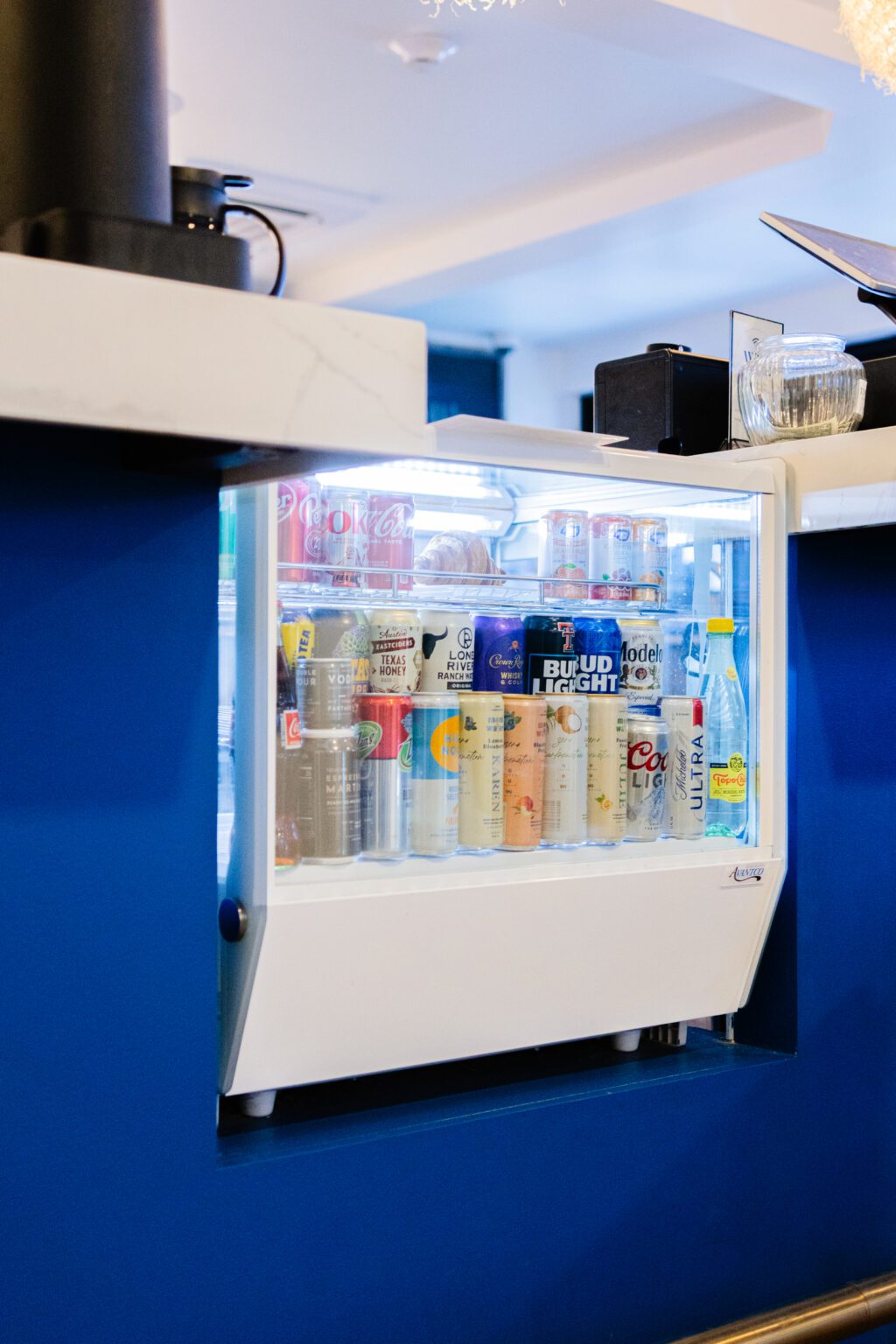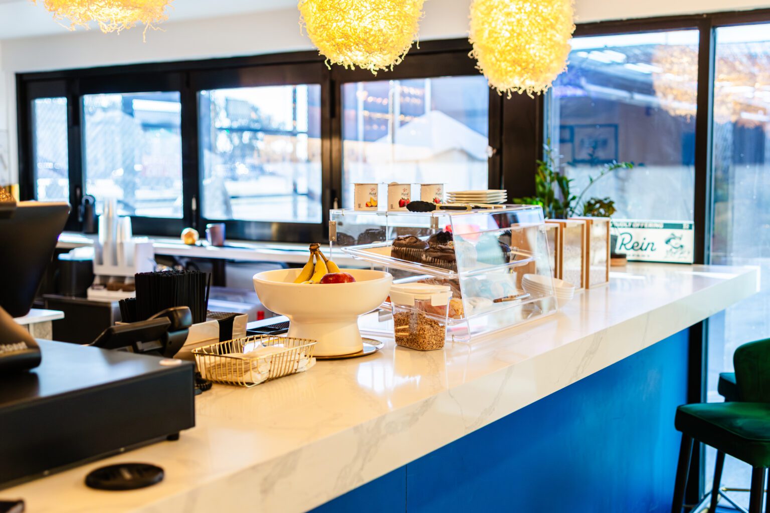 We serve breakfast bites, snacks, and cocktails from our full bar. Enjoy a variety of breakfast offerings, including cereals, yogurt, juices, local drip coffee, and an assortment of pastries. Espresso drinks and marketplace items are also available to purchase for guests interested in these offerings. Patrons not staying at the hotel can purchase breakfast items a la carte and lounge with us.